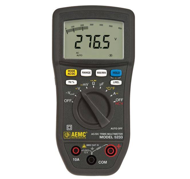 | AE/2125.65 | AEMC DMM 5233 (TRMS, 6000-cts, V, A, AC/DC, Ohms, Freq, Cap, Temp, NCV) | $117.00 |