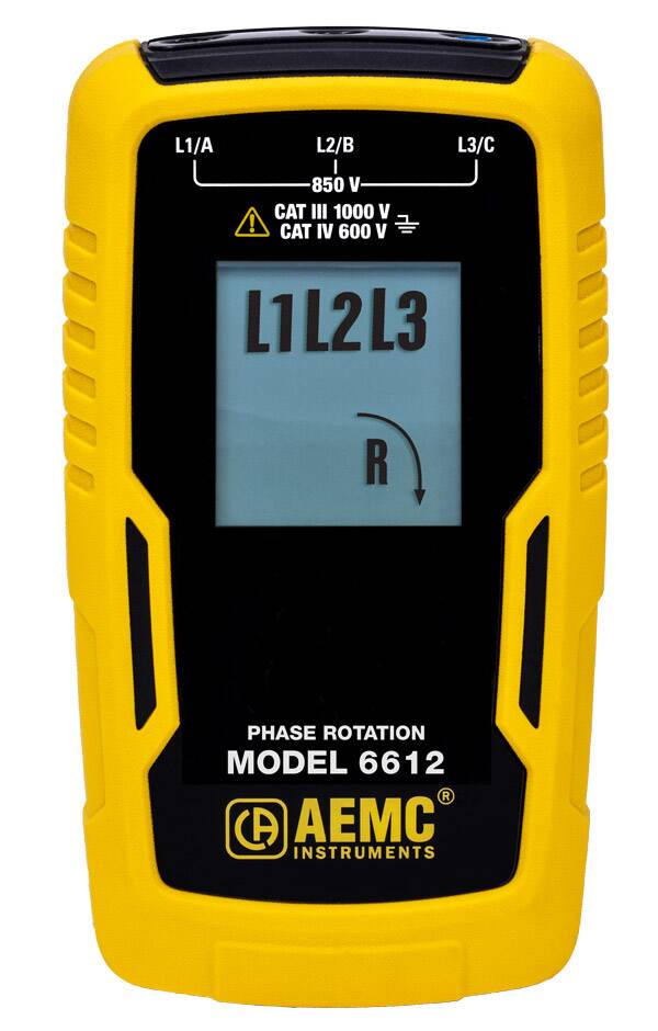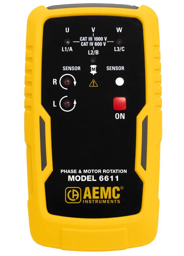AEMC Models 6610, 6611 & 6612 are ideal for installing rotating machines or motors, and checking generator output phase direction. All models are protected internally by high impedance circuitry to limit current to a user safe level.
