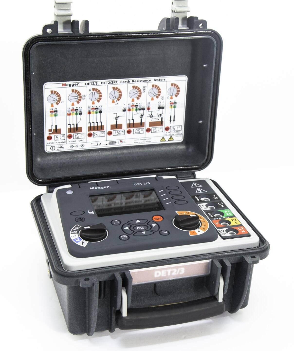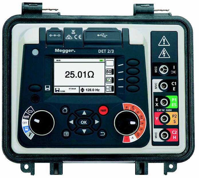 For testing in extreme electrical environments, the DET2/2 offers full autoranging, 0.001ohm resolution, adjustable test frequency and additional interference filtering. All DET3 and DET4 models are CAT IV 100V and IP54 rated. Test leads and carrying case are included.