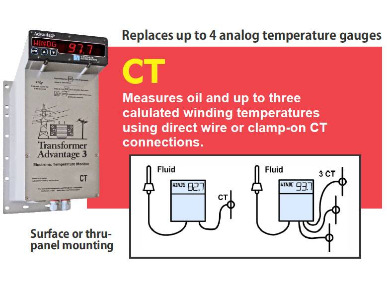 The Transformer Advantage is a precision oil & winding temperature monitor for liquid immersed power and distribution transformers. It is rugged, fully electronic and field configurable. With Transformer Advantage, users can extend transformer life, u tilize maximum capacity and reduce maintenance costs.
